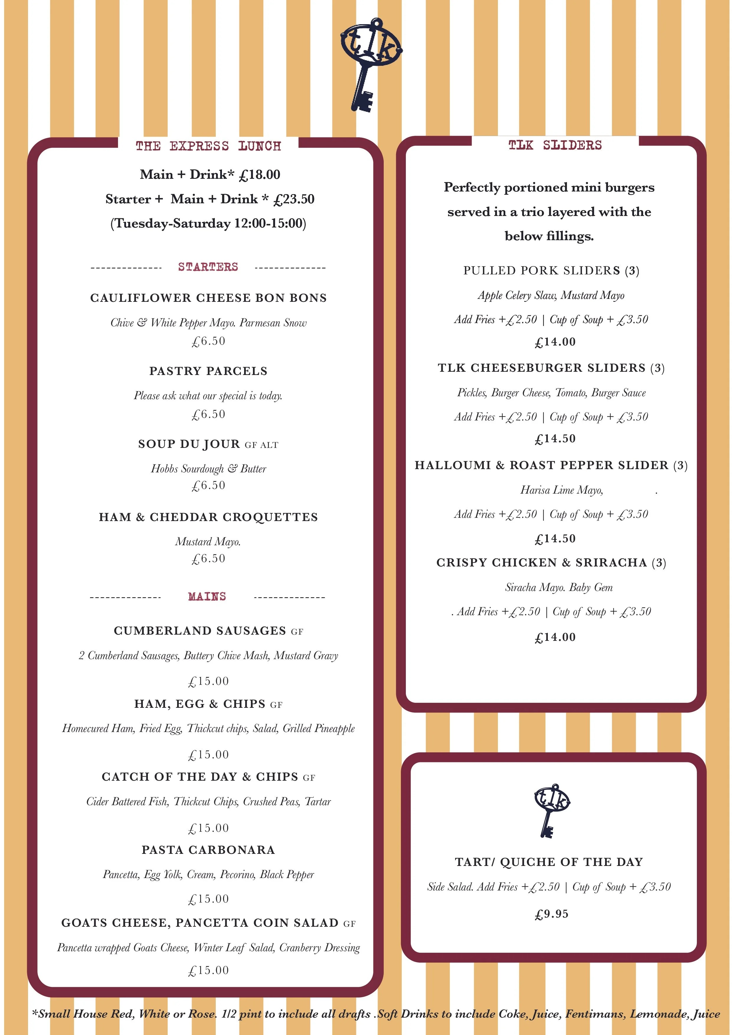 Our lunch menu features one-of-a-kind Express Deals that let you choose from a range of delicious meals perfectly paired with a selected wine or beer. We also serve a variety of handcrafted sliders, each made with care and packed with flavour. Every dish is prepared using locally sourced ingredients, bringing freshness and quality to every bite.